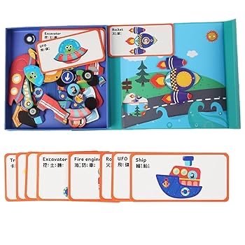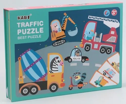 عبارة عن صندوق يحتوي على قطع بزل ممغنطة لوسائل مواصلات مختلفة صمم هذا اللغز للأطفال بعمر 3 سنوات فما فوق