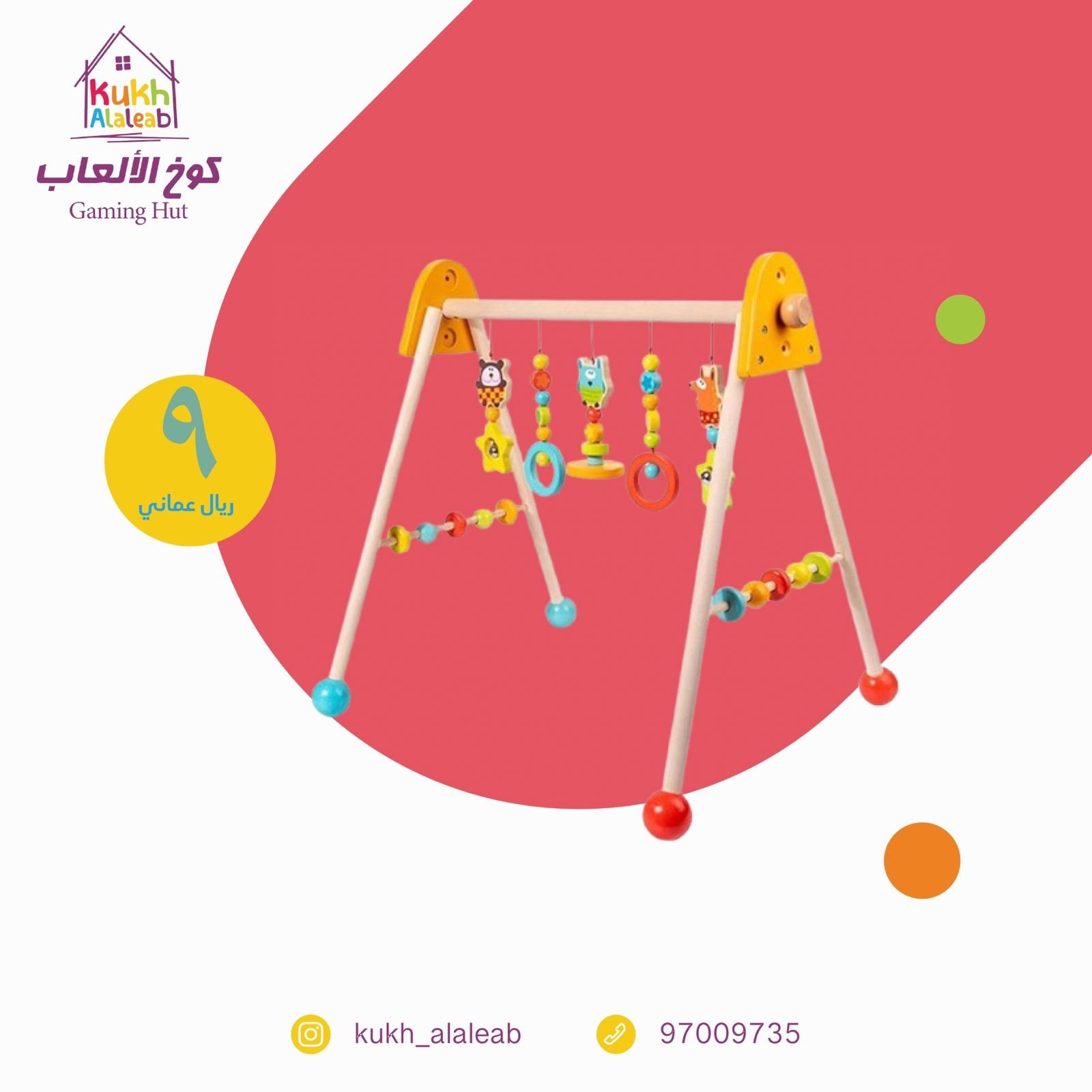 تتميز هذه الصالات بتصميم بسيط وهيكل متين مصنوع من الخشب الطبيعي مثل خشب الصنوبر أو الزان. يتم تعليق ألعاب حسية ملونة عليها لتشجيع الرضع على التفاعل، مما يساعد في تطوير مهاراتهم الحركية الدقيقة والتنسيق بين اليد والعين.