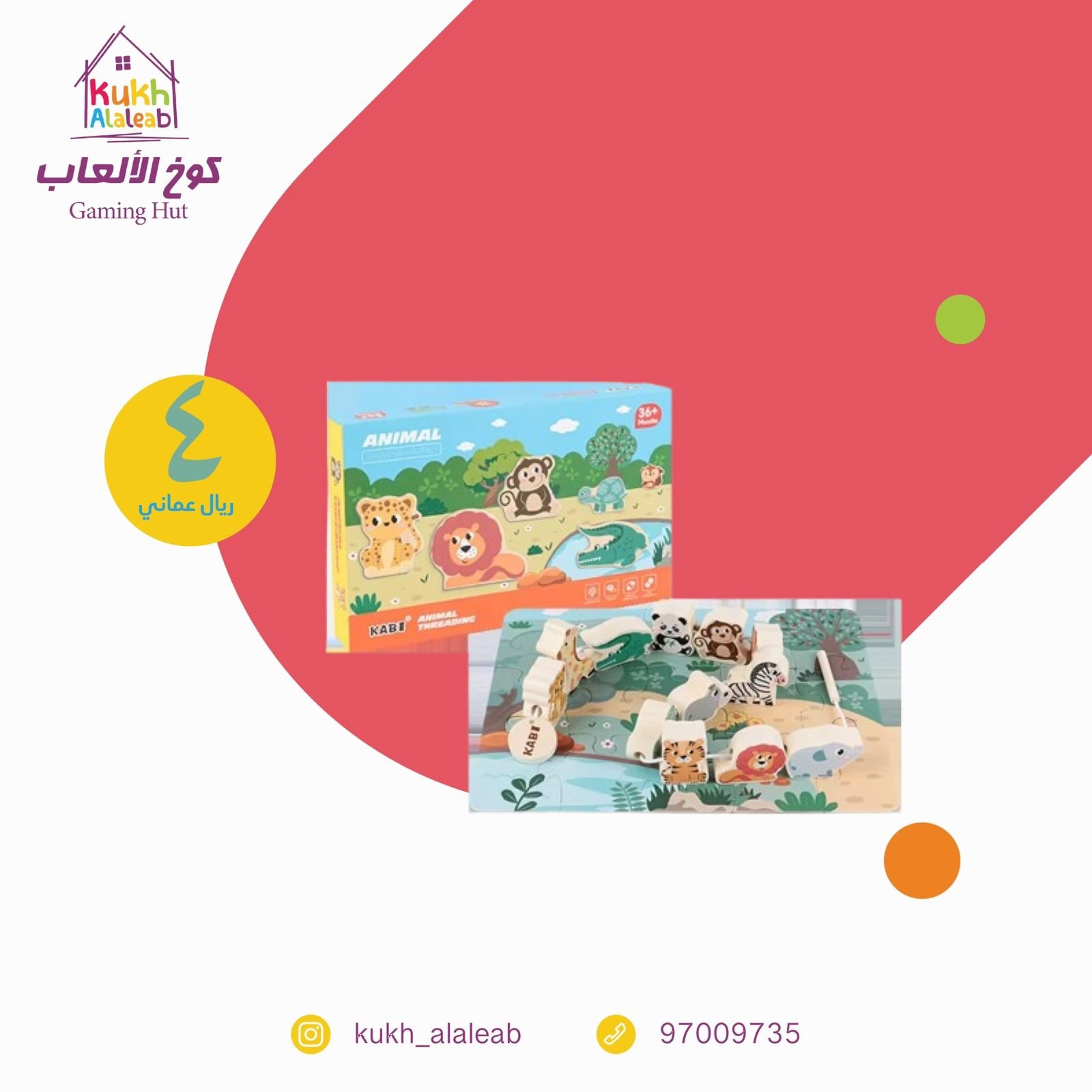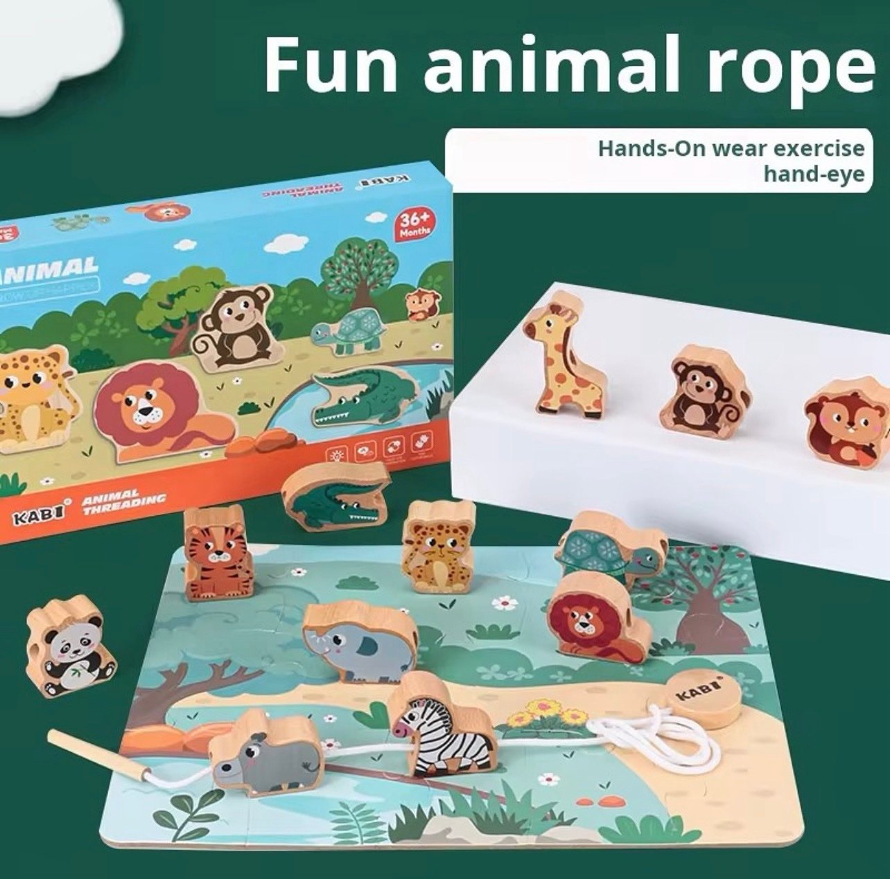 • نشاط الربط: يمكن للأطفال تمرير الخيط عبر الثقوب الموجودة في قطع الحيوانات الخشبية المختلفة ولوحة اللعب الرئيسية، مما يساعد على تنمية مهارة التحكم بالأصابع ويُهيئهم لتعلم مهارات مثل ربط الحذاء.