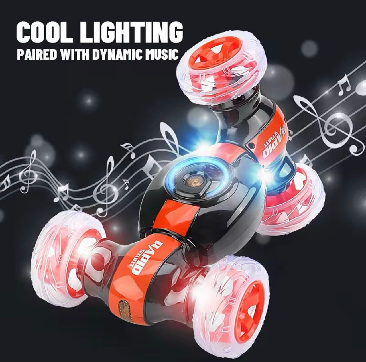 سيارة تعمل بجهاز التحكم عن بعد قابلة للدوران والتشقلب مع موسيقى