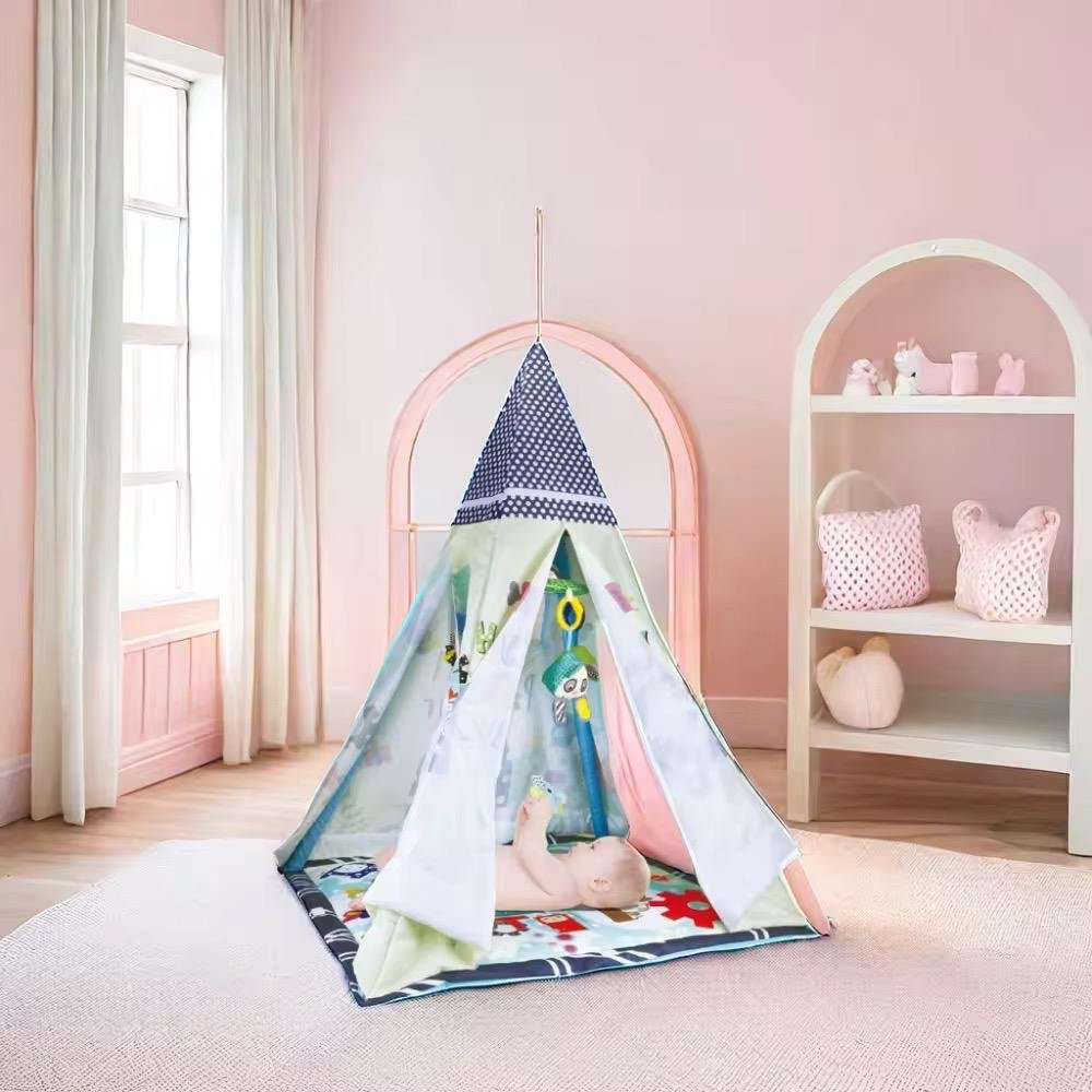 حصيرة اللعب للأطفال الرضع توفرت بشكل جديد ومميز …فهي يمكن أن تكون حصيرة لعب مع تعليقات مميزة بألوان زاهية ويمكن أن تكون خيمة للعب بحيث يلعب فيها الطفل حتى بعد أن يكمل السنة من عمره
