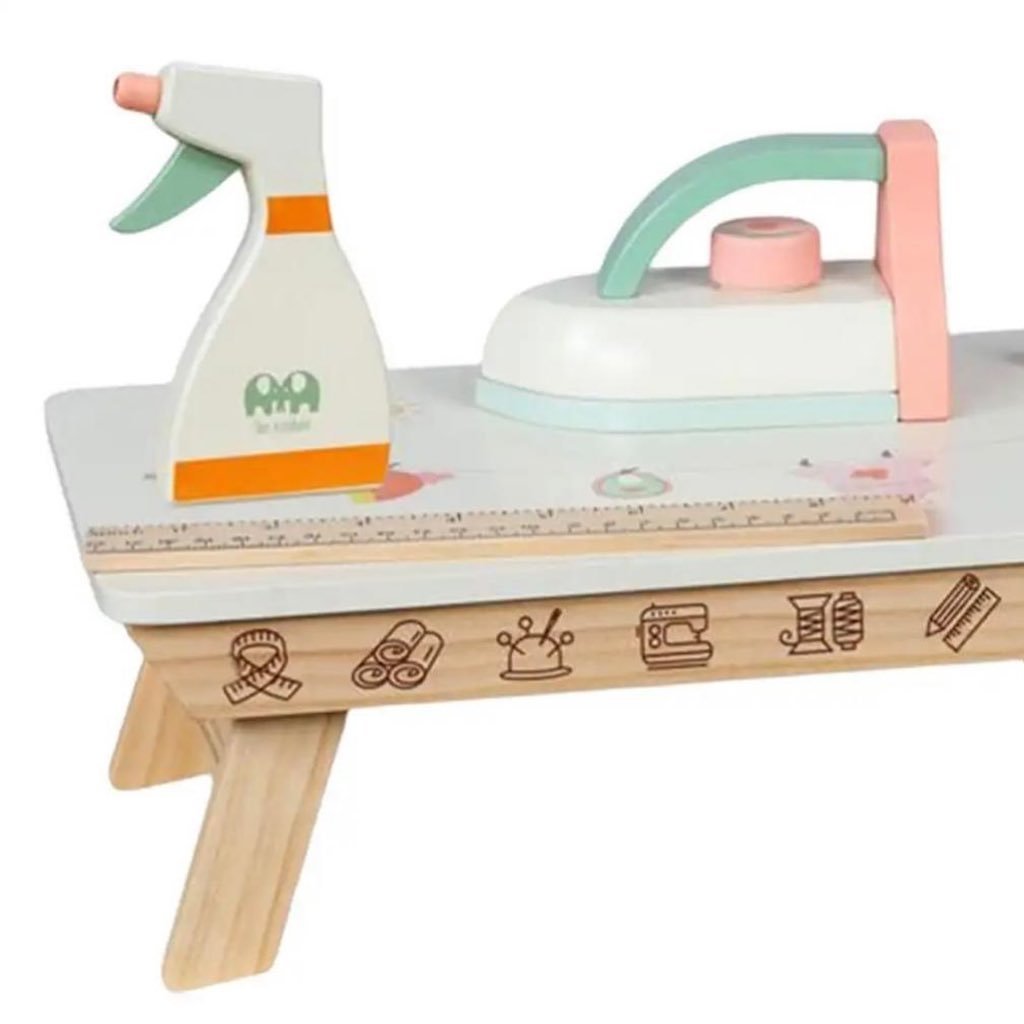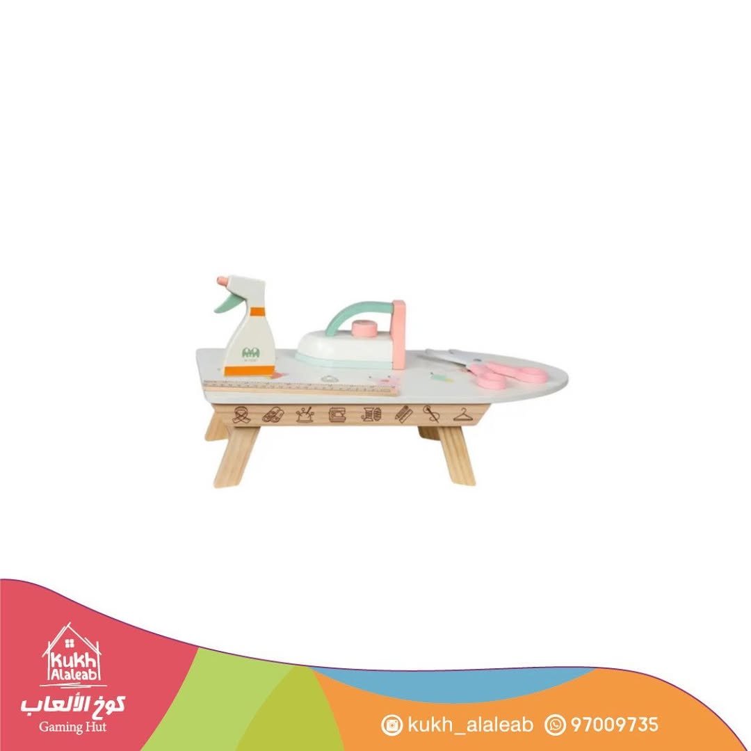 من الألعاب التخيلية المحببة لدى الفتيات لعبة المكواة الخشبية ..تساعد على تعلم مهارة كي الملابس تحتوي على طاولة كي /مكواة/مسطرة/علبة بخاخ ..كل الأدوات خشبية عمر 3 سنوات