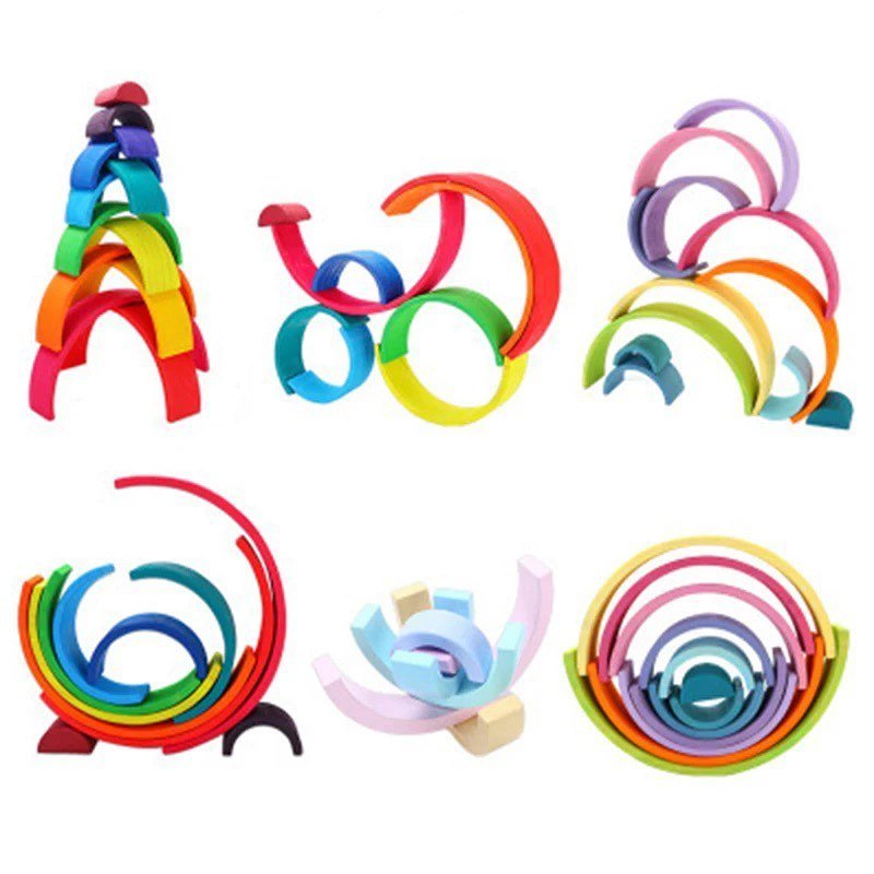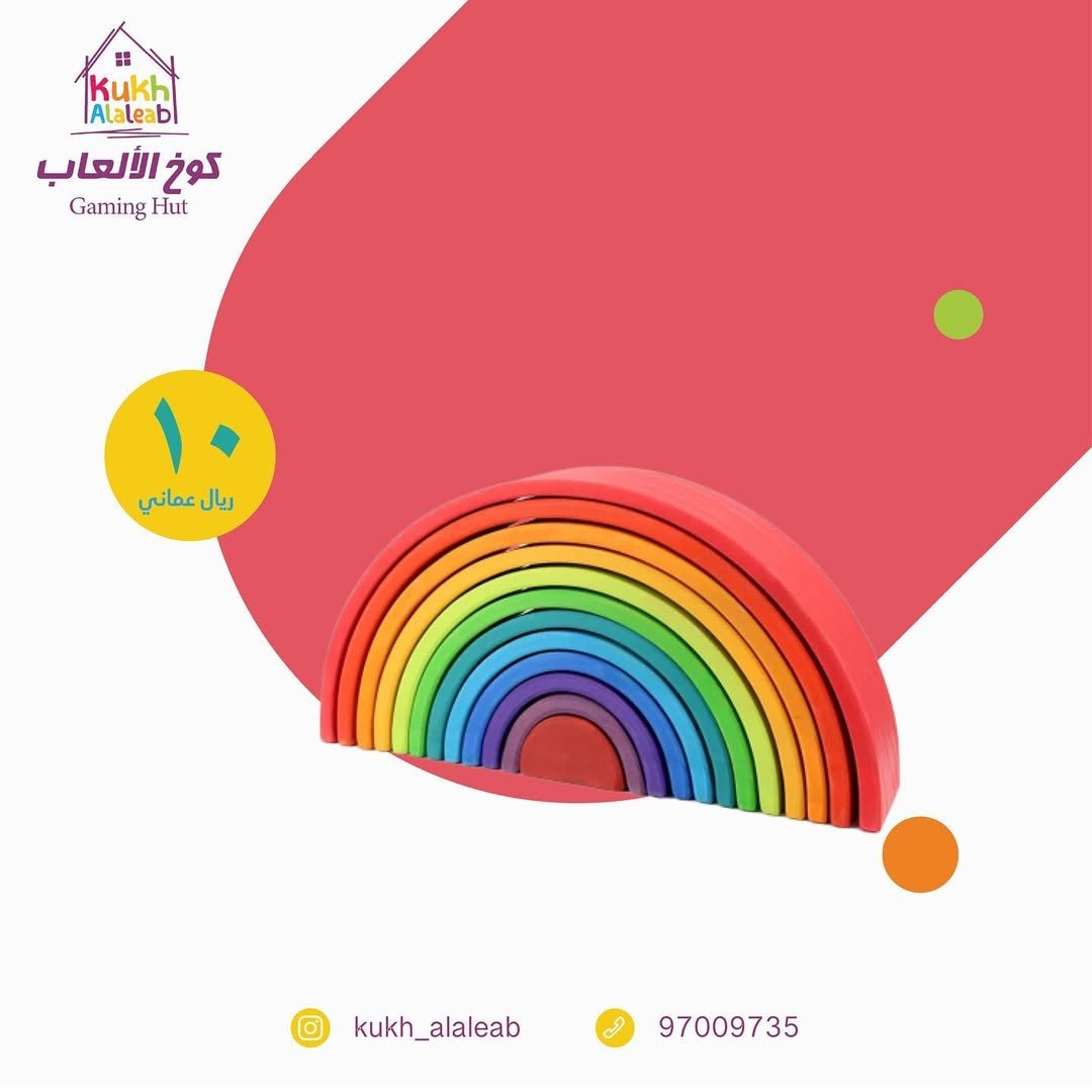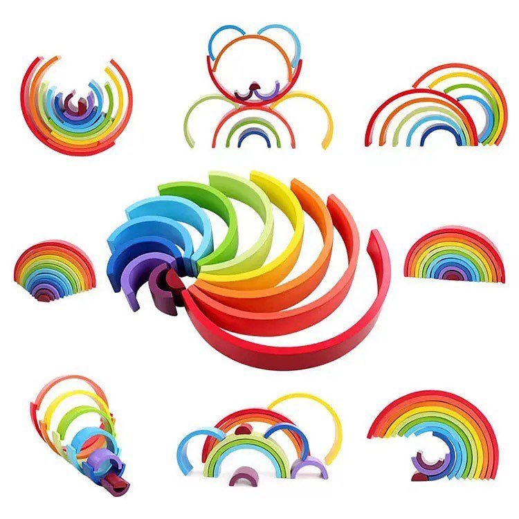 اقواس القوس قزح تعتبر من اللعب الحر يستطيع الطفل من خلالها اللعب فيها بالطريقة التي يريدها ، ممكن اعتبارها جسور بناء أو بزل أو انفاق ، بالاضافة تساعد الطفل لتعلم الالوان من خلالها كما تعتبر إضافة جميلة إلى أي غرفة، تعتبر أقواس قوس قزح الخشبية قطعة جذابة للجدار. مصنوع من خشب عالي الجودة، كل قوس مطلي بمجموعة من الألوان الزاهية. مثالي لإضافة لمسة مرحة إلى الحضانة أو غرفة نوم الأطفال أو غرفة اللعب أو أي مساحة أخرى تريد إضفاء اللون عليها.