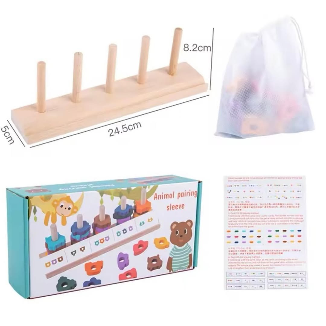 لعبة مطابقة أشكال الحيوانات الخشبية