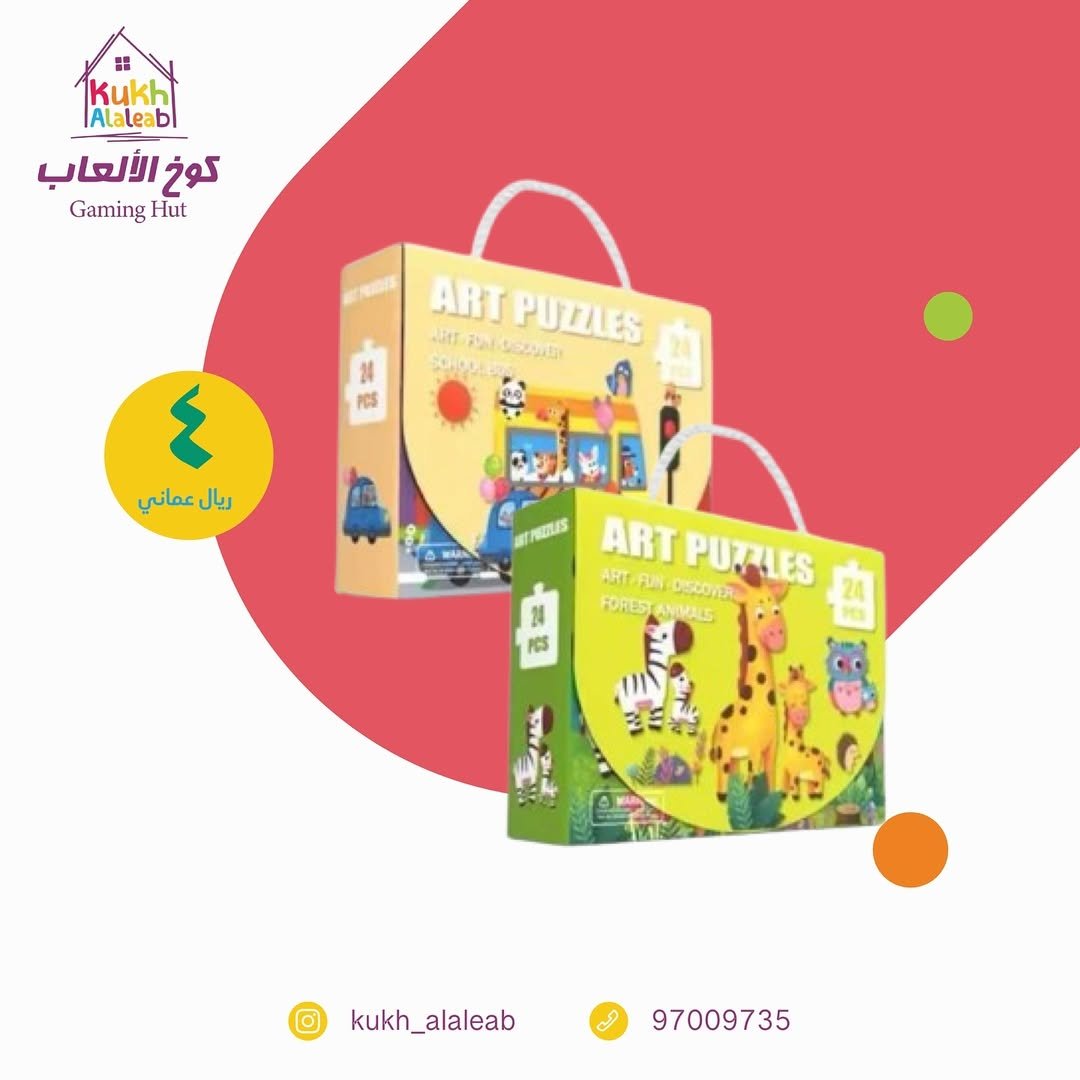 قطع البزل كبيرة الحجم مكونة من ٢٤ قطعة ، متوفر بثيمين الحيوانات في الغابة و الحيوانات في الباص مناسب من عمر ٣ سنوات